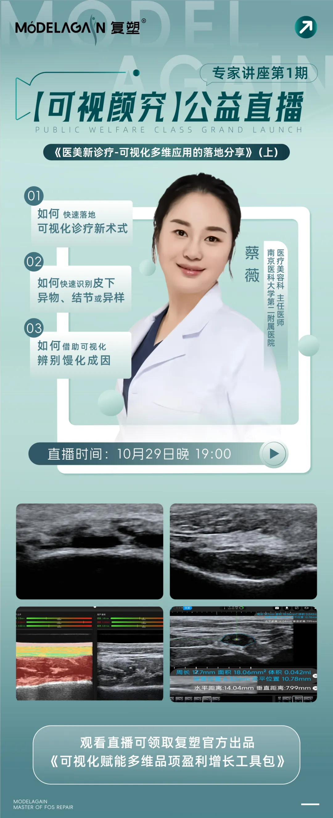 本次直播,复塑将邀请南京医科大学第二附属医院医疗美容科主任医师蔡薇做客直播间,从诊疗思路与临床实践双视角,分享医美可视化在馒化修复的诊断及骨性材料并发症规避中的应用与临床发现。
